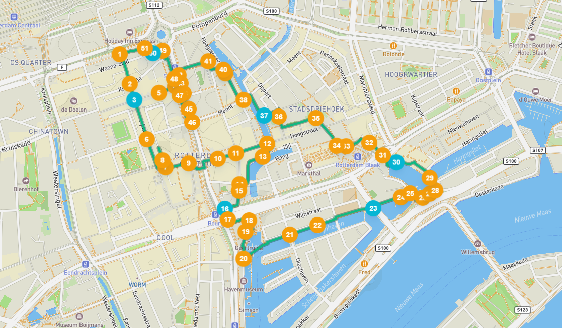 Das ‚Manhattan an der Maas‘ – nur Amsterdam ist größer als diese Stadt voller Wolkenkratzer. Wenn man an Rotterdam denkt, sind die Häfen, der Euromast, Feyenoord, der Koopgoot und die Erasmusbrücke, das Krankenhaus und die Universität oft die ersten Gedanken, die einem in den Kopf schießen. All dies verleiht Rotterdam seine eigene Atmosphäre und Identität. Bei der Audiotour durch die Stadt erhältst du einen Eindruck von dieser Atmosphäre und entdeckst typische Rotterdamer Sehenswürdigkeiten wie die Große oder die St.-Laurens-Kirche, die Würfelhäuser, das schöne Weiße Haus am Alten Hafen und das Schieland-Haus mit dem Grafen von Hennegouwen. Außerdem stößt du auf ein auf dem Wasser schwimmenden Hotel und auf einen Turm in Form eines Bleistifts. Mach dich bereit und lerne die Identität von Rotterdam während dieser Tour kennen.