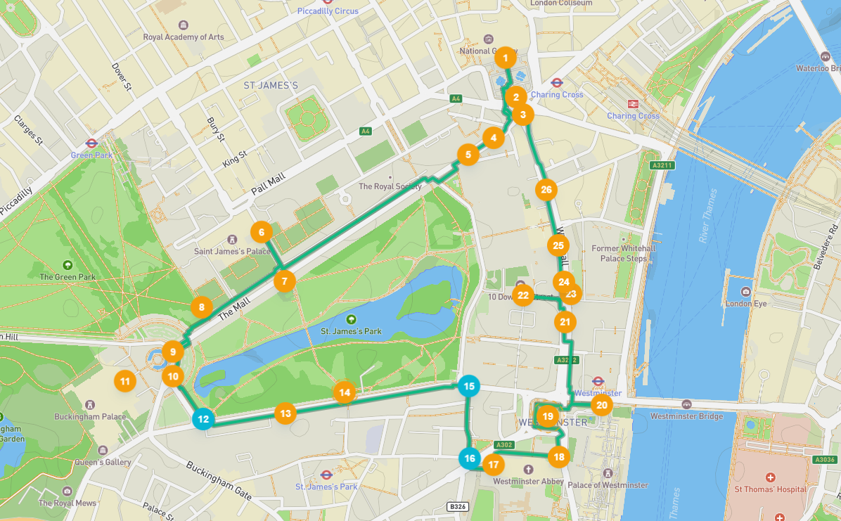 Alors que le parcours pédestre autoguidé avec un guide audio vous conduit à travers les rues sinueuses de Londres, il vous offre des récits captivants et des perspectives historiques. Immergez-vous dans la riche histoire et la splendeur contemporaine de Londres, guidé par CityAppTour, explorant chaque coin de cette ville enchanteresse.