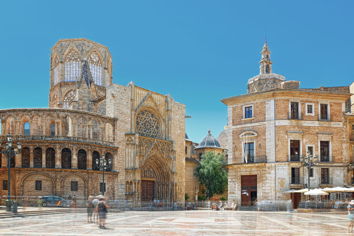 La cathédrale de Valence combine styles gothique, roman et baroque. Selon la tradition, elle abriterait le Saint Graal. Son architecture reflète les différentes époques de la ville.