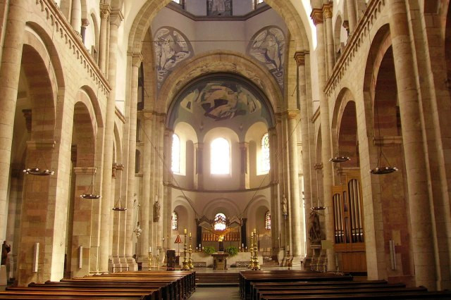 Founded in the 11th century, the basilica represents pure Rhineland Romanesque style with its distinctive trefoil apse design. The crypt contains Roman foundations from a 4th-century predecessor church. Allied bombing destroyed the roof in 1944, but careful restoration revealed original frescoes hidden for centuries beneath baroque additions.