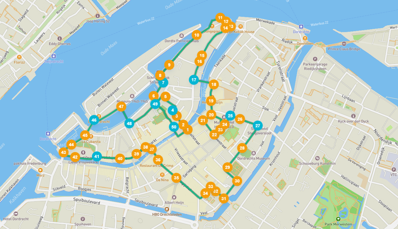 Dordrecht is a city where you can admire the history, culture and nature. From the beautiful historic harbors to picturesque alleys and a thousand imposing monuments, Dordrecht is the perfect city for a self-guided audio tour. Let the audio tour take you past one of the oldest distilleries in the Netherlands, the Grote Kerk, Huis van Gijn and the narrowest house in Dordrecht. You will also learn more about one of the worst atrocities in history and who knows, you might even manage to spot the cannonball in the Grote Kerk. In short, this hidden pearl and Holland's oldest city is rich in history, has ancient stories and will certainly not disappoint you.