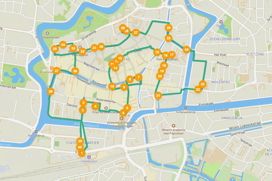 Een van de oudste steden van Nederland, vol met monumenten en grachten, dat is Leeuwarden. De hoofdstad van Friesland staat onder meer bekend om de kruidenlikeur Beerenburg, Cambuur en Leeuwarden is de start en finish van de Elfstedentocht, de meest iconische en beroemde schaatswedstrijd ter wereld waarbij 200 km op natuurijs moet worden afgelegd langs 11 Friese steden. Duik in de verhalen van de stad tijdens deze interessante audiotour door Leeuwarden. Je loopt onder andere langs de Jacobijnerkerk, de Waag, Blokhuispoort en indrukwekkende standbeelden zoals Anne Vondeling en De Frisiaan. Bovendien is het niet nodig om naar Pisa te gaan om een scheve toren te bewonderen. Jij ontdekt namelijk het verhaal van de scheve Oldehoven toren tijdens deze stadswandeling.